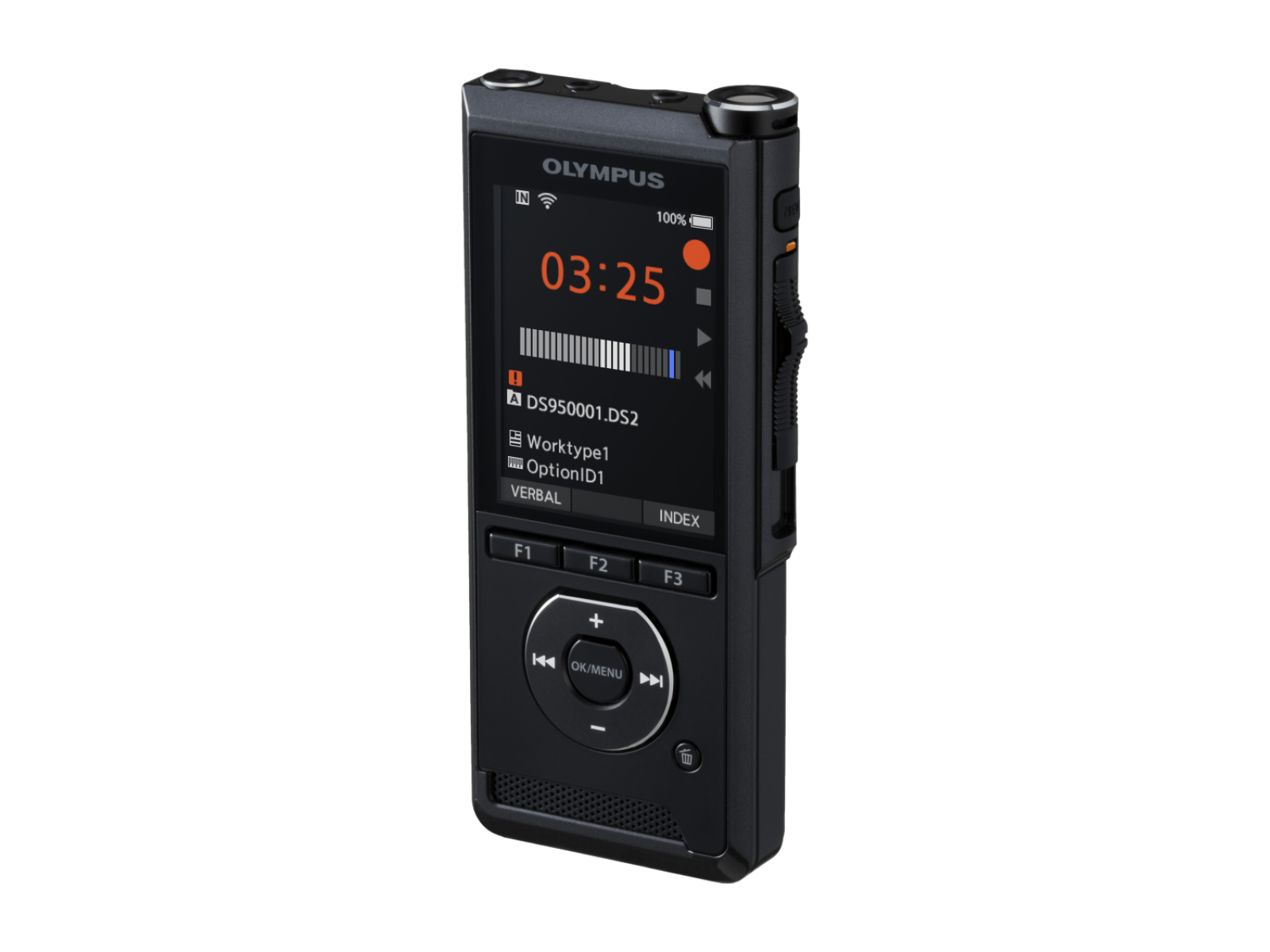 Mais surtout, le second microphone du dictaphone Olympus DS9500 peut être utilisé pour supprimer les bruits de fond, de sorte que le microphone principal du dictaphone se focalise uniquement sur la voix. Par ce biais, vous avez la possibilité de créer des dictées de qualité pour la reconnaissance vocale avec le dictaphone n’importe quand, n’importe où, que les environnements soient calmes ou bruyants.